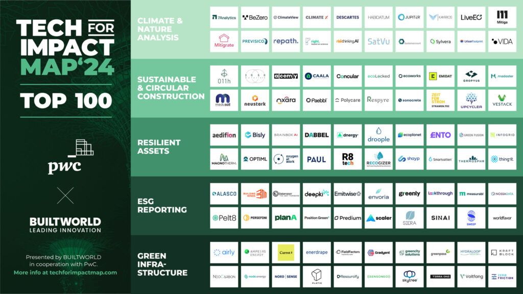 Auch in diesem Jahr wurden die Top 100 Real Asset-Technologieunternehmen im Rahmen der “Tech For Impact Map” von BUILTWORLD in Zusammenarbeit mit PwC ausgewählt.